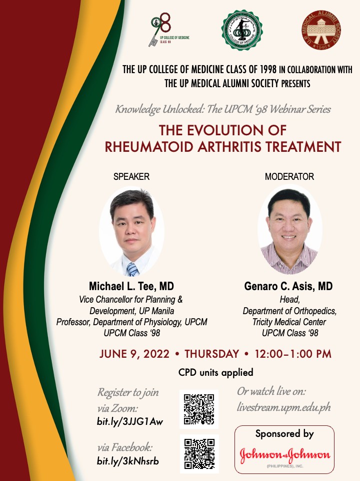 Join us on June 9 for a webinar on "THE EVOLUTION OF RHEUMATOID ARTHRITIS TREATMENT", brought to you by UPCM '98.