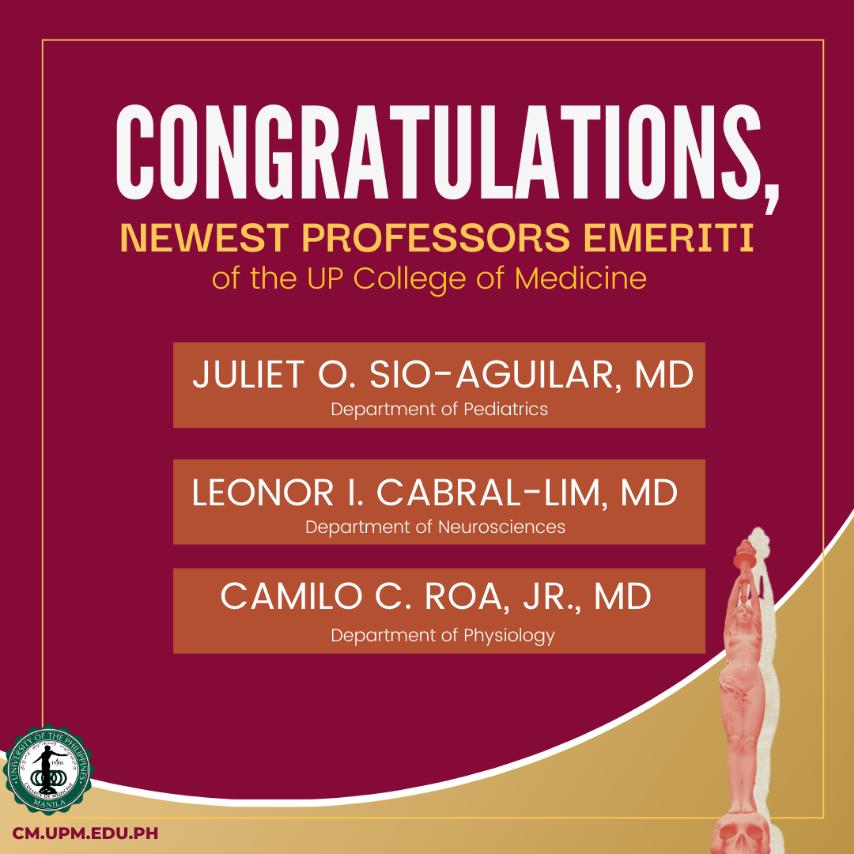 Congratulations to the newly appointed Professors Emeriti of the UP College of Medicine!